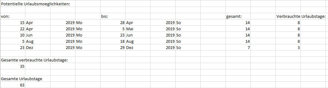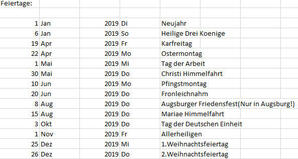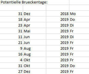 Kai: Wir bauen momentan ein Programm, welches die Feiertage und im selben Zug die Brückentage, sowie die mögliche Urlaubszeit ausgibt. Damit kann man planen, wann man am besten Urlaub nimmt.